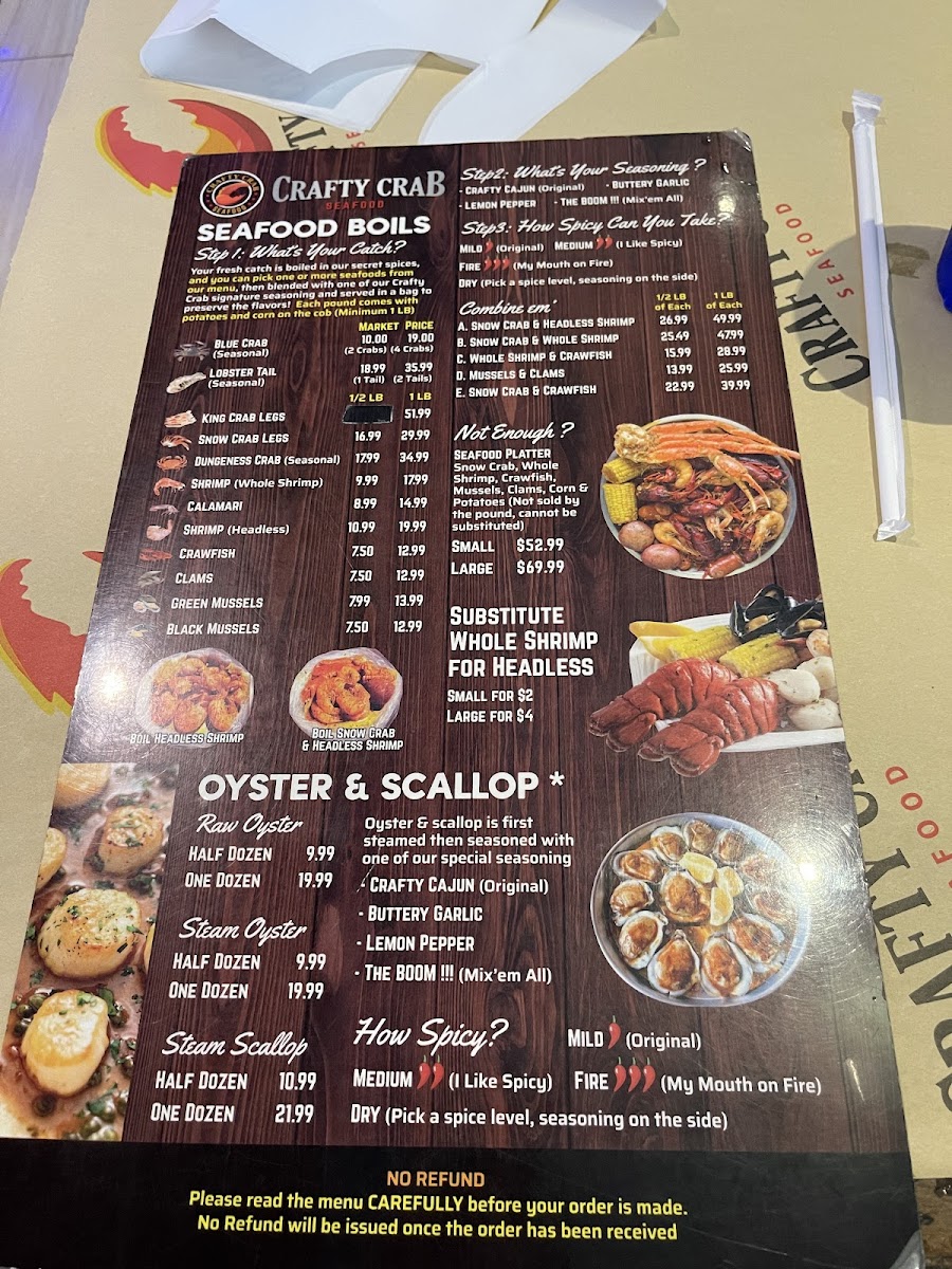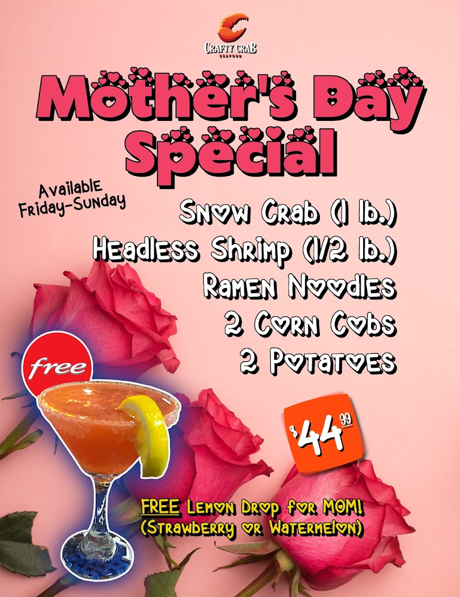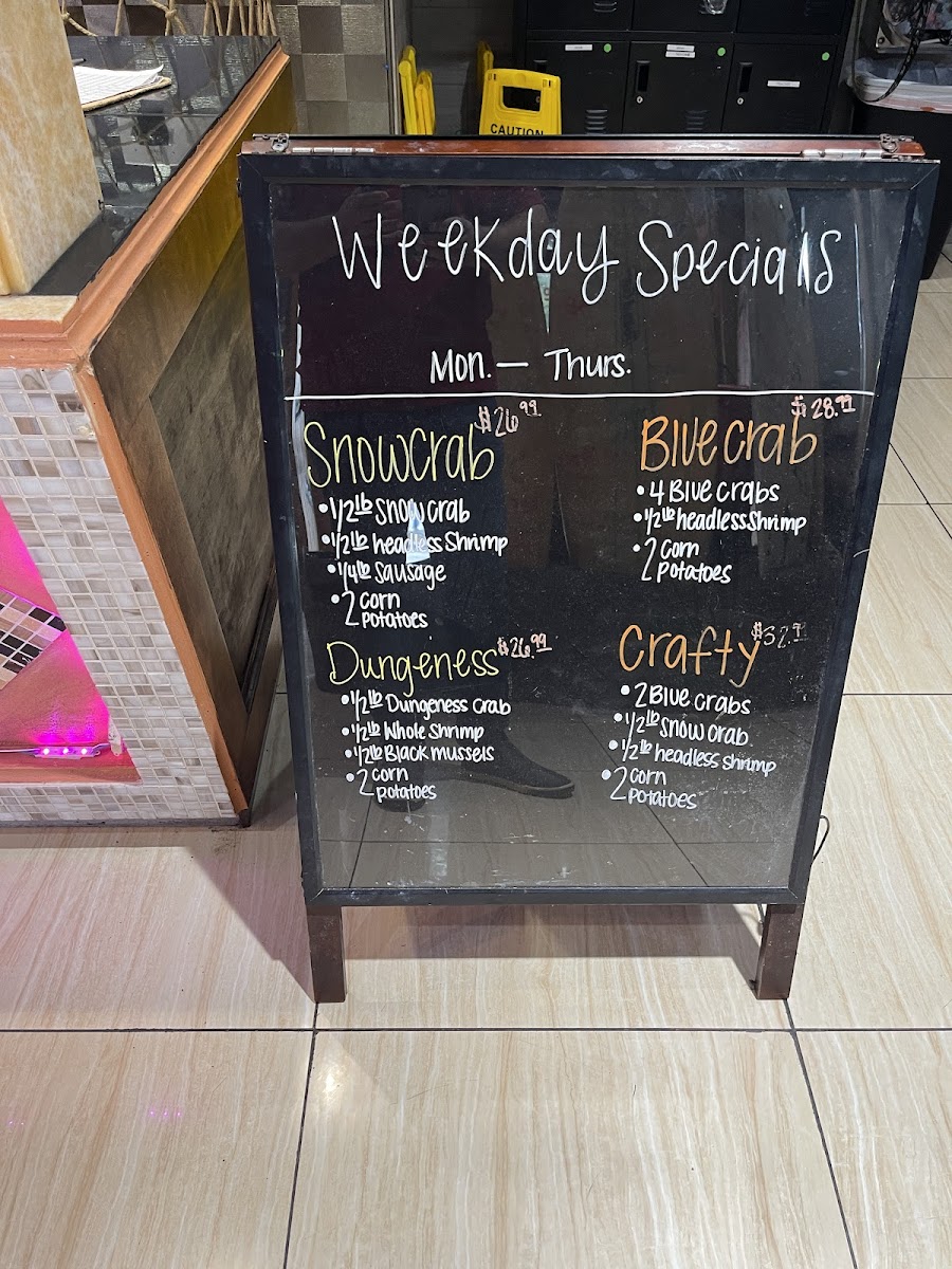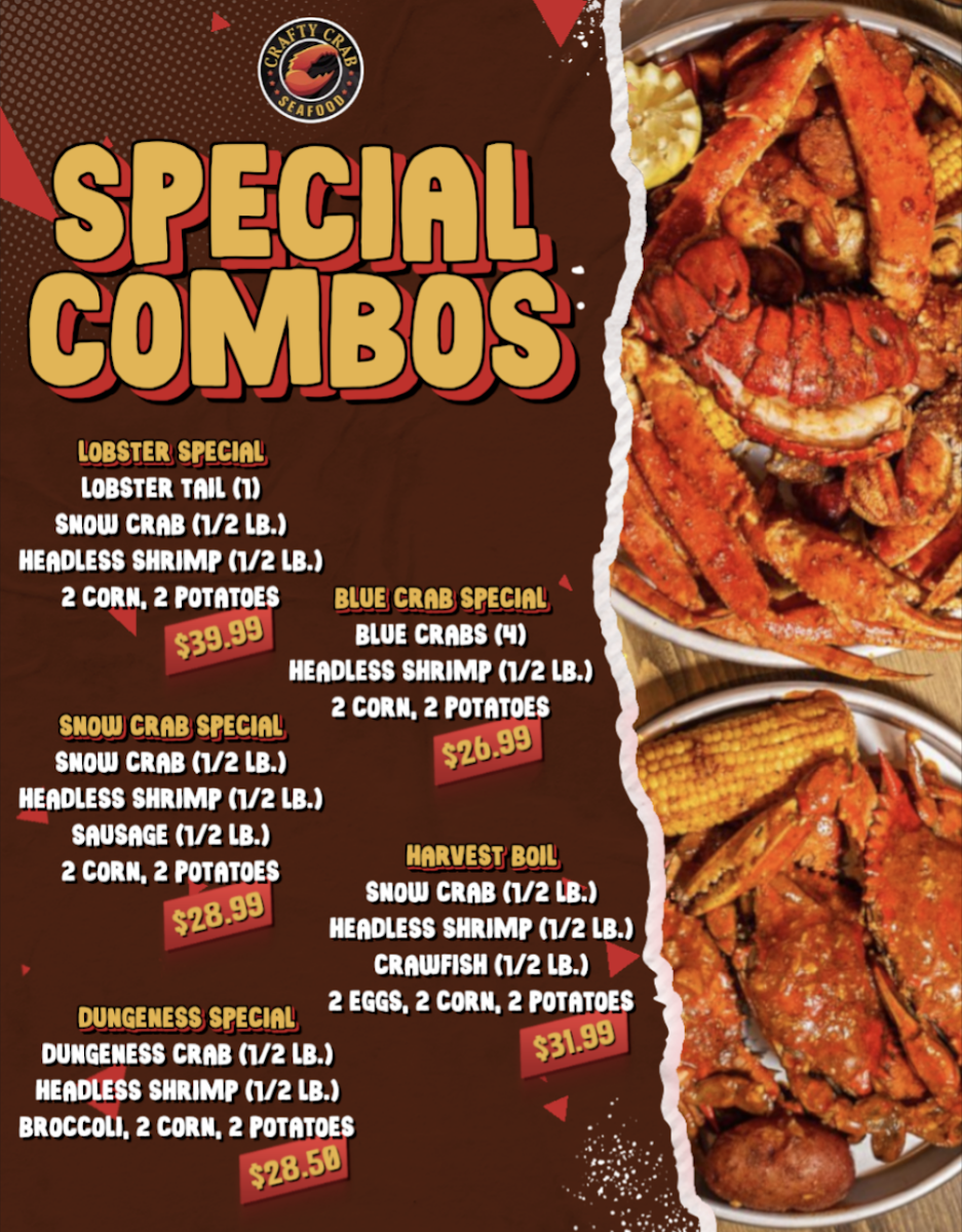Welcome to Crafty Crab, a seafood haven located in Orange Park, Florida. This vibrant restaurant offers a delightful range of dishes that celebrate the ocean's bounty, perfect for seafood enthusiasts and novices alike. The menu features an impressive selection of specials, such as the Snow Crab Special, which includes clusters of snow crab, succulent headless shrimp, and savory sausages, all served with corn and potatoes for just $34.79.